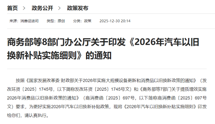 计划2026年买车的朋友注意!最新“国补”细则来了!#买车#以旧换新#2026年国补细则#汽车报废更新#汽车置换更新#补贴#百分比补贴