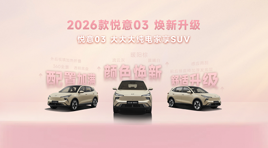 3月8日,一汽奔腾旗下2026款悦意03正式上市,新车推出445km和565km两种续航版本的6款车型,售价区间为7.98万—11.99万元,并带来全新晨...