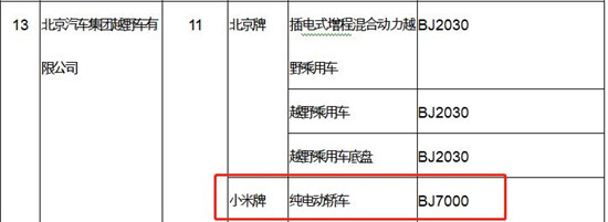 据工信部企业申报车型公示详情显示,小米汽车产品商标为“小米牌”,为纯电动轿车,由北京汽车集团越野车有限公司代工,生产地址“北京市北京经济技术开发区环景路21号院”。小米汽车两款车型型号为SU7和SU7 Max,车尾有“北京小米”字样。