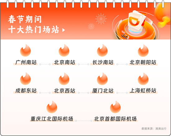 春节期间十大热门场站 滴滴出行微信公众号截图