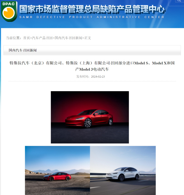 具体来看,特斯拉宣布将自公告日起,召回8700辆汽车,包括7629辆国产Model 3,以及1071辆进口Model S、Model X。