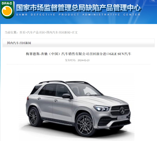 奔驰则将自公告日起,召回1辆进口GLE SUV汽车。召回原因是车辆因装配时使用过长的螺栓对高压燃油泵进行固定,可能影响高压燃油泵与机油泵之间的密封性,造成燃油和机油泄漏,如接触到高温部件,存在起火风险。