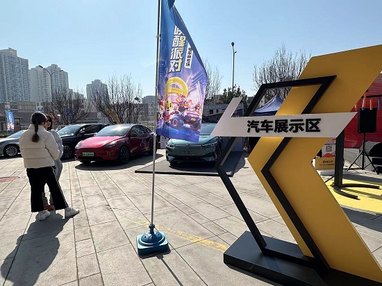 活动现场,比亚迪、特斯拉、小鹏、极狐、阿维塔、沃尔沃等16个品牌、20余款车型集中亮相,并推出了品牌直降、置换补贴、免费保养等多重福利。