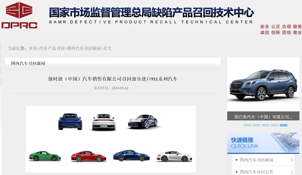 保时捷发布1起公告,宣布自4月22日起,召回共计561辆进口911系列汽车,共计561辆。