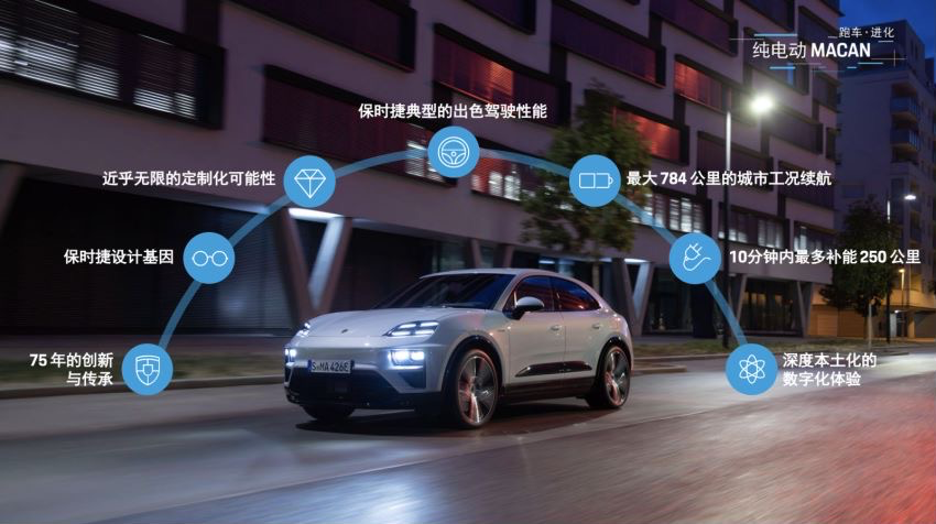 纯电动Macan搭载最新一代双永磁同步电机输出功率470 kW,最大扭矩1,130 Nm,连续弹射起步无衰减,100 kWh新型蓄电池最高784 km续航里程。