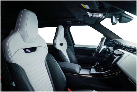 轻量化方面,SV专属碳纤维材质遍布车身,应用于引擎盖、Range Rover标志、前保险杠叶片、格栅边缘和侧面通风口,以及内饰板和座椅等处,除了带来奢华、运动的视觉感观外,还实现了整车76公斤的减重成果。其中,23寸碳纤维轮毂与碳陶瓷刹车搭配,让整车簧下质量减少达70公斤。