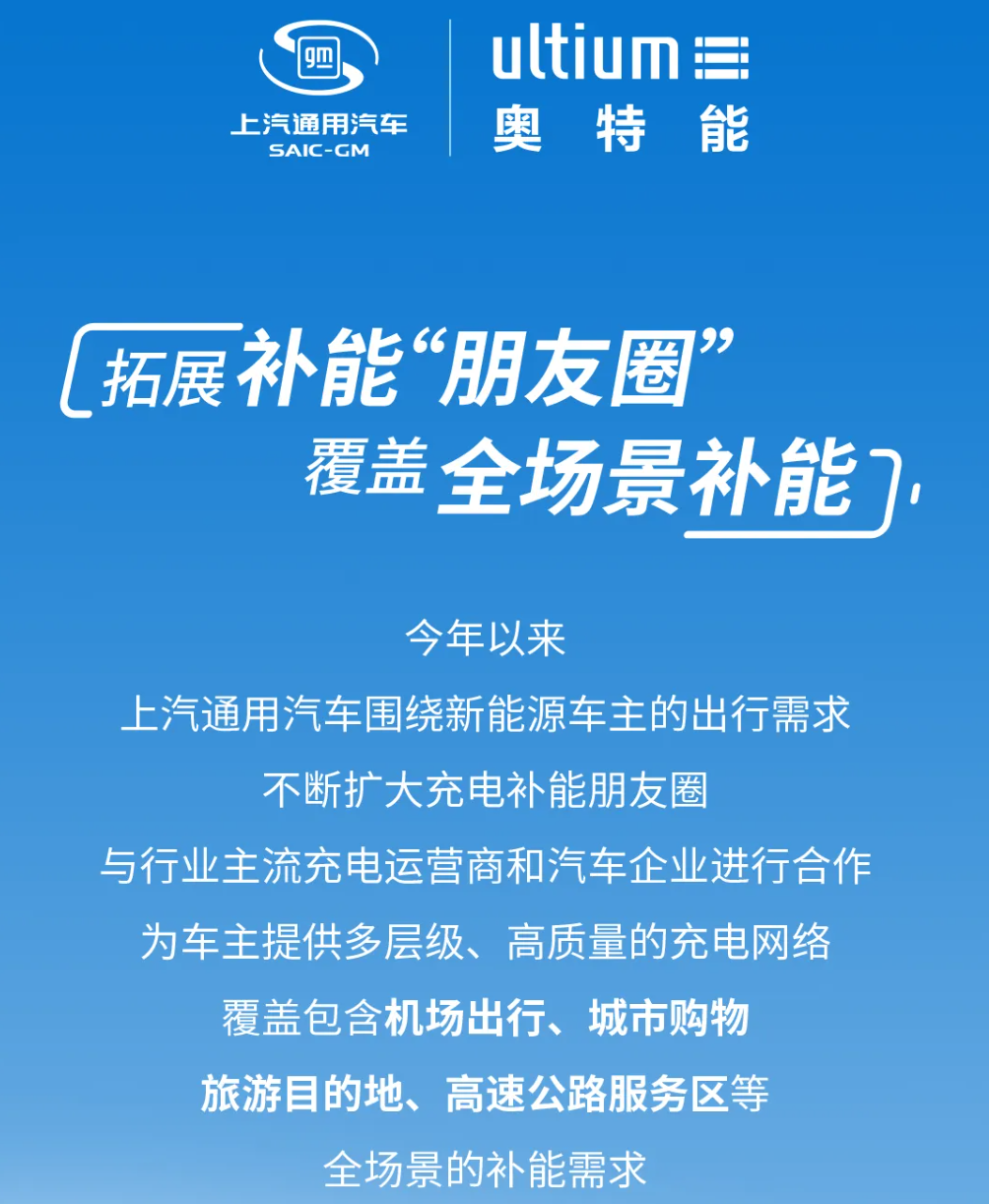 上汽通用持续推进与行业主流充电运营商和汽车企业进行合作,是致力于为车主提供多层级、高质量的充电网络,满足消费者更多场景下的补能需求。