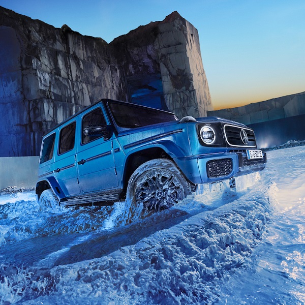 自1979年诞生以来,G级越野车便以棱角分明的硬派造型和势不可挡的硬核性能,成为无数车迷心中的越野图腾。聚焦新车,全新纯电G级越野车延续家族方盒子造型及一望而知的圆形大灯,并在电动时代保留了闻名的越野三件套:电动虚拟差速锁、非承载式车身及电动低速越野挡。智能电驱系统搭载4台可独立控制的轮边电机及4台电动两挡变速箱,搭配高精度扭矩矢量控制功能,带来任意车轮毫秒级的响应速度。自此,梅赛德斯-奔驰正式实现全品牌量产电动化。