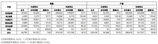 长城汽车4月产销快报截图