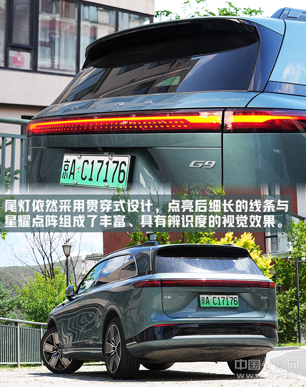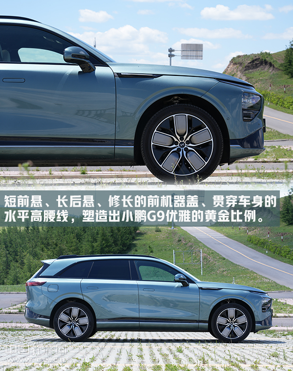 贯穿点阵式下格栅,不仅拉满车头横向视觉效果,更一路延伸、环绕车侧,衔接一气呵成。顺势走至车侧,这是记者眼中小鹏G9最优雅的型面,短前悬、长后悬、修长的前“机器盖”,以及贯穿车身的水平高腰线,塑造出优雅的黄金比例车身。值得注意的是,如果只对比车身长度的话,小鹏G9相较同级别竞争对手并不占优,但简约大气的线条、修长的比例却让其看起来很像“大车”。