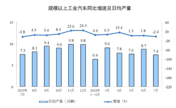 聚焦汽车领域,7月汽车制造业工业增加值增长4.4%,相比6月下滑2.4个百分点;1-7月累计同比增长9%,较上半年累计增幅下降0.8个百分点。此外,汽车行业出口交货值从2023年12月份以来,连续8个月保持两位数增长。