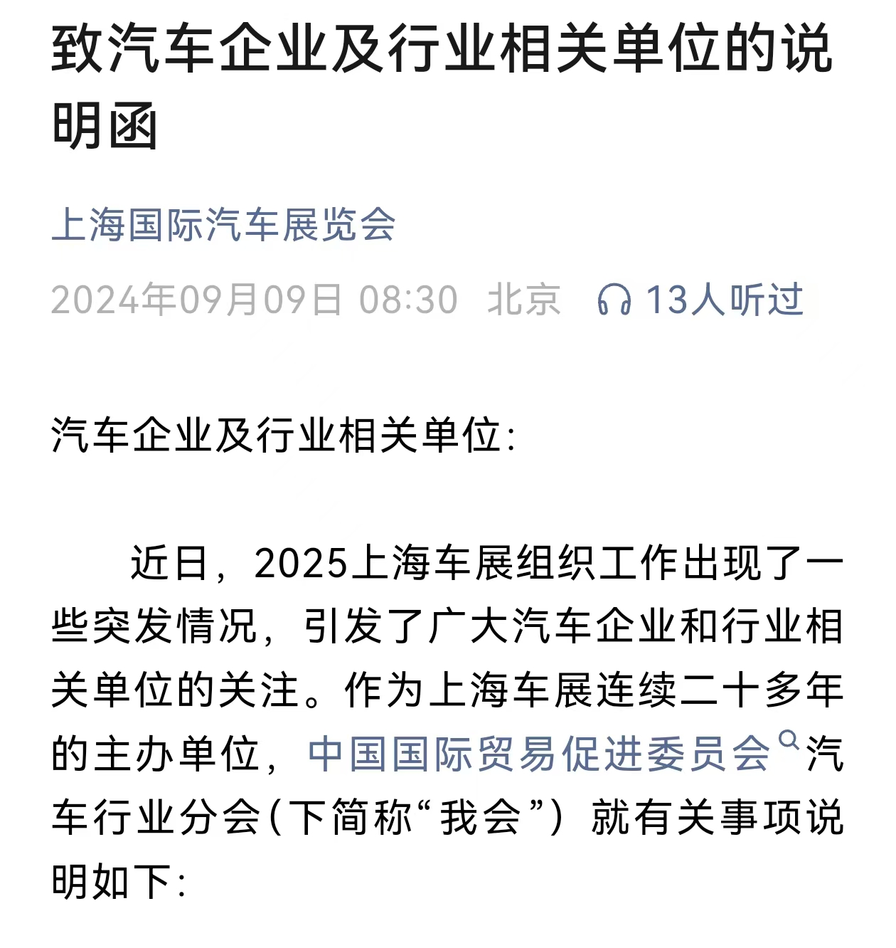 2025上海车展主办方变更?中国贸促会汽车行业分会发表声明