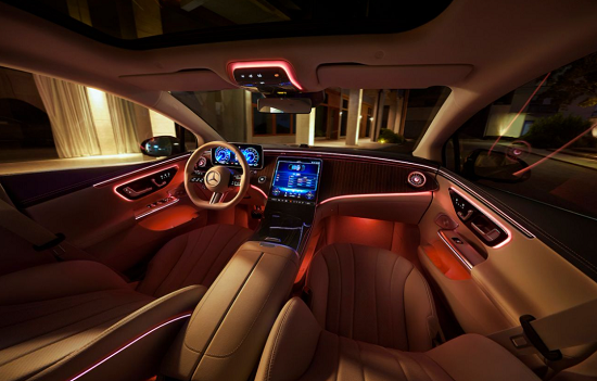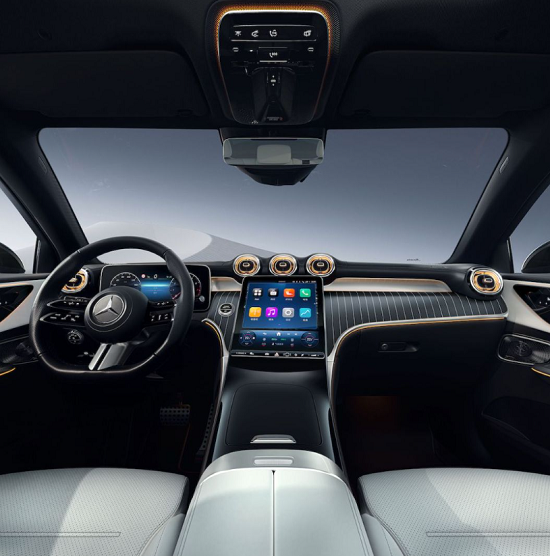 旗舰版车型新增长达1.41米的一体式曲面玻璃设计MBUX超联屏;焕新配备主动式环境氛围灯,配合全系可选的Burmester?环绕立体声音响系统,营造迷人座舱氛围。全系标配5G通信技术并赠送3年免费无限流量,以及UWB数字钥匙。