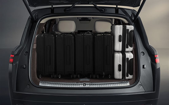 腾势N9整车布局46个储物空间,还创新性地采用“666”布局,全车配备6个云栖座椅,即使是在满载6人的情况下,依然可轻松容纳6个行李箱及6个背包,或轻松横置放下47寸高尔夫球包,满足全家出行的多样化需求。