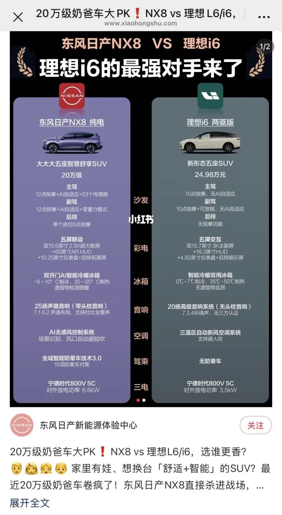 社交平台涌现多条“东风日产NX8对标理想L6、理想i6”的内容