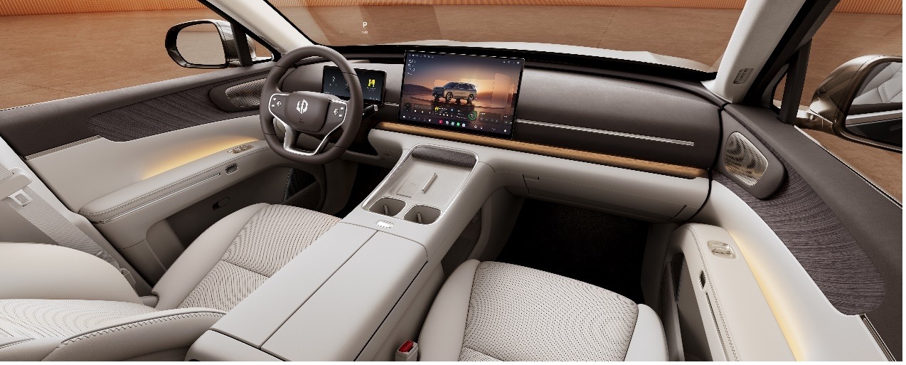 内饰则以双层叠环绕座舱为核心,水平线条向两侧延伸,打造开阔的视觉空间,横向舒展一体化设计营造温润豪华氛围。材质工艺尤其考究,单片单裁、大师级高定辊边、高定V字绗缝、珍珠打孔、天鹅绒顶棚拉毛、V字拼花、后备厢簇绒七大车规级高定工艺,搭配座椅导轨包覆、椅背软包、PVD镀层扬声器罩面,每一处细节都彰显旗舰底蕴。