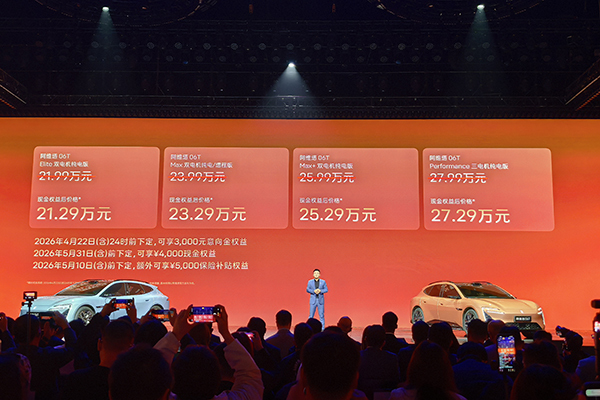 4月22日,阿维塔科技旗下智美全场景运动轿车——阿维塔06T正式上市,新车共推出纯电、增程两种动力五款车型,售价区间为21.99万—27.99万元,限时权益后到手价为21.59万—27.59万元。