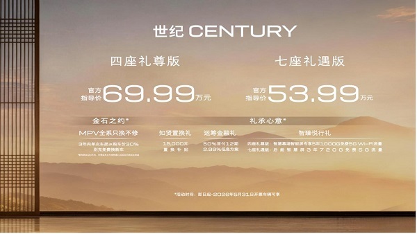 4月28日,别克超豪华旗舰MPV——新款世纪CENTURY焕新上市,共推出2款车型,官方指导价四座礼尊版69.99万元,七座礼遇版53.99万元。上汽通用汽车总经理卢晓自信表示,别克拥有行业最深厚的旗舰MPV研发积淀,新款世纪CENTURY正是“开合间,礼遇万千”的标杆之作。此次新款世纪CENTURY的上市,不仅进一步完善了别克MPV家族燃油、插混、纯电三轨并行的全矩阵布局,更以东方美学的全新表达、行业首创的硬核技术、全维拉满的顶奢体验,重新定义了中式超豪华旗舰MPV的价值标杆。