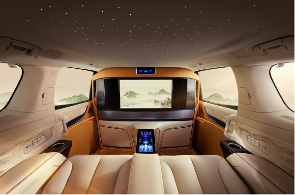 于座舱细节处,新车将《溪山雨意图》的山水意境深度融入内饰设计:136,092针「江山如画」鎏金刺绣打造环抱式山水座舱,同级唯一15mm进口鎏金羊毛地毯复刻山水流痕自然意境,星河绣帷星空顶棚点缀366颗星星,拥有8大星空模式与语音触发流星功能,让用户入座即享“人在车中坐,如在画中游”的沉浸式体验。