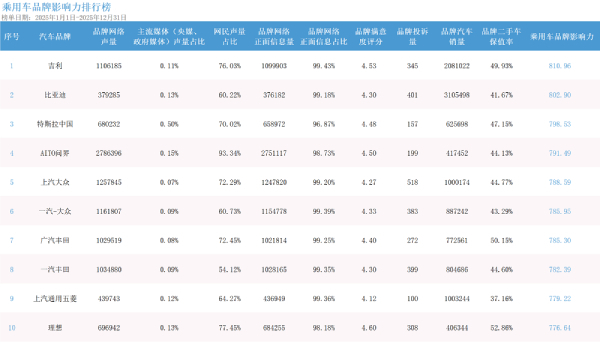 1月23日,中欧协会智能网联汽车分会发布了2025年度中国乘用车品牌影响力指数报告,全面揭示了在过去一年中,中国乘用车市场品牌影响力格局所发生...