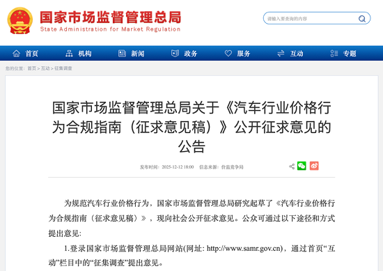 为此,中国经济网专题推出《2025汽车大事记》专题,包括《全年超十次精准出手 监管重拳整治汽车行业乱象》、《反内卷!汽车行业齐心落实“六十天账期承诺”》、《从舆情风暴到行业重构 监管护航智驾安全第一》、《一致性失守威胁产业安全 多部门构建立体监管体系》,以及《政策锚定“理性竞争” 汽车行业严控无序价格战》,共5篇文章加以盘点。